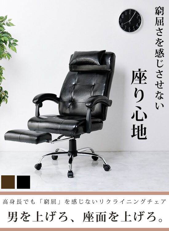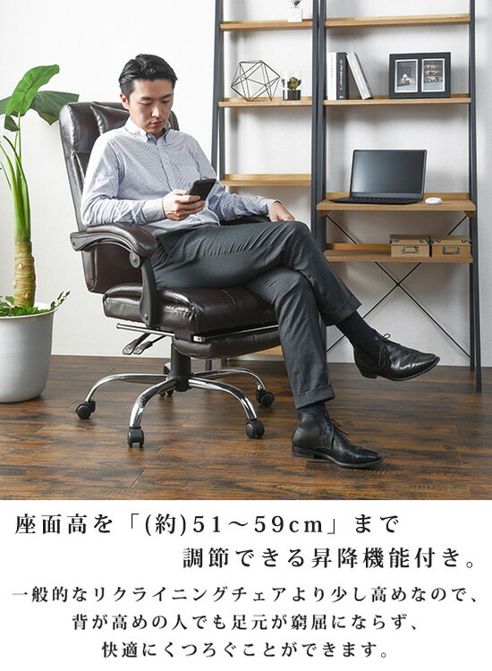 リクライニングチェア オットマン一体型 【リラックスチェアー LRC-4628】 [送料無料] 書斎チェアー オットマン一体型 仕事用チェア 在宅ワーク ハイバック リクライニングチェア
